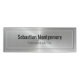 Cette étiquette magnétique de nom arrière comporte un nom professionnel en noir et un titre en gris sur un arrière - plan en acier inoxydable faux. Il est encadré par une bordure blanche et grise à rayures. Personnalisez les champs de texte ou cliquez sur personnaliser pour sélectionner un style de police, une taille et une couleur que vous préférez.