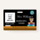 Un joli badge photo horizontal conçu pour l'école primaire avec un faux tableau, un petit ours et quelques livres. En plus de la personnalisation habituelle comme le nom de l'enseignant, le titre, le nom de l'école et l'année pour laquelle l'insigne est valide, celui-ci vous permet également d'ajouter votre insigne de district scolaire. © ArianeC Illustrations-Tous droits réservés