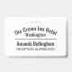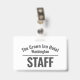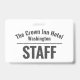 Badge d'identité du personnel de l'hôtel. Design simple montrant le nom et l'emplacement de l'hôtel ainsi que le mot "PERSONNEL" en gros et en gras au dos. Badge d'identité d'uniforme du personnel pour les employés de l'hôtel. Transportez votre identité de marque sur les vêtements des employés de l'hôtel. Parfait également pour les travailleurs des pubs et des bars. Le nom de l'hôtel est incurvé.