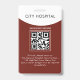 Modèle de badge d'identification professionnel pour hôpital avec vérification sécurisée par code QR, détails du personnel et instructions de retour. Idéal pour les médecins, infirmières et professionnels de la santé nécessitant des informations d'identification officielles. Le design propre marron et blanc assure la visibilité, l'authenticité et la conformité aux normes de sécurité de l'hôpital.