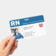 Une conception de badge d'identité propre et professionnelle créée pour les milieux de soins de santé. Cette mise en page présente un en-tête RN gras, un nom et des informations d'identification personnalisables, ainsi qu'un espace pour une photo afin de créer une première impression soignée et digne de confiance.