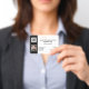 Un badge horizontal noir clair forme une bordure à gauche de cette carte et contient un modèle pour votre logo, votre code à barres et votre photo d'employé. L'avant droite et l'arrière de la carte ont des modèles pour le nom de votre entreprise; les détails de l'employé et l'adresse de l'entreprise. Personnalisez le modèle pour qu'il corresponde à vos besoins et changez la couleur de l'arrière - plan et de la police en fonction de votre choix personnel.