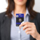 Un design simple mais frappant en bleu marine, blanc et noir avec des modèles pour votre logo ; une photo de votre employé; les détails concernant votre entreprise et la date d'emploi, le groupe sanguin et la date d'expiration de la carte. Personnalisez le modèle pour qu'il corresponde à vos besoins et changez la couleur arrière - plan à l'un de vos choix personnels.