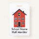 Un vecteur (pour une impression de haute qualité) illustration graphique d'une maison d'école rouge avec le texte (personnalisable) Nom de l'école et Moniteur de salle.
