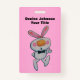 Ce nom ou badge d'identification est rose vif avec un lapin lapin blanc amusant donnant un signe pouce haut portant une cravate arc noir. Customisez votre nom et vos informations aux modèles.