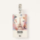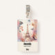 Name tag with a stylized Eiffel tower image surrounded by pretty butterflies and delicate garden flowers.