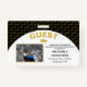 Elégant noir et or Graduation Photo Badge Guest, conçu pour vous pour invitation ces personnes spéciales à votre événement très spécial. L'en-tête principal incurvé indique GUEST et CUSTOMIZABLE TEXT à droite (où vous pouvez ajouter le nom de l'événement, les hôtes et le nom de diplômé et la classe de détails) et une PHOTO PERSONNALISABLE à gauche. J'ai inclus la référence biblique chrétienne pour les Éphésiens 3:20 - "Dieu est capable de faire excessivement, abondamment". TOUT TEXTE EST PERSONNALISABLE, vous pouvez personnaliser ce badge d'invité pour vos besoins spécifiques. Choisissez parmi une large sélection de designs Graduate sur cartes, invitations, vêtements, décoration et cadeaux, conçus par Berean Designs. Fournitures de partie correspondant disponibles.