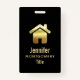 Une étiquette de nom avec une simple image d'une maison en dégradé or sur un arrière - plan noir. Design minimaliste élégant.