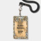 Une fausse feuille d'or élégante recouvre un motif empreinte de léopard sauvage sur cette invitation de fête d'anniversaire de Quinceañera et un pass VIP imprimé sur un badge en plastique unique - commande avec ou sans cordon. CORRESPONDRE des articles dans notre magasin.