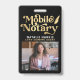 Élégant badge d'affaires tendance pour agent signataire de prêt notaire mobile avec faux feuille d'or manuscrit script de calligraphie "notaire mobile" sur un arrière - plan noir. Personnalisez avec vos détails.