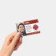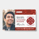 Un arrière - plan en marbre rouge et une police élégante ajoutent professionnalisme et facilité de lisibilité à ce badge photo d'identité de pompier. Personnalisez avec le nom, le titre de l'emploi et le nom et/ou le numéro de la caserne d'incendie. Customisez avec la devise des pompiers, le contenu de la croix Florian, la date d'établissement de la caserne d'incendie, la photo du porteur et la signature du porteur. Le type de police et les couleurs peuvent être modifiés selon vos besoins. La conception inverse montre des champs modifiables pour la hauteur, le poids, le numéro de contact, l'adresse, le numéro d'insigne (inscription), la date de délivrance et la date d'expiration. Design © W.H. Sim, Tous droits réservés. Voir plus sur zazzle.com/expressionsoccasions