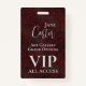 Elégant rouge foncé avec noir empreinte de léopard motif vip tous badge d'accès pour votre prochain événement d'affaires, grand ouverture, concert, fête d'entreprise avec typographie personnalisable dans la police de script tendance et personnalisée avec votre nom d'entreprise, événement et informations de médias sociaux.