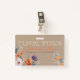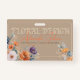 Votre badge d'entreprise dégage un charme délicat et artistique, qui laisse parfaitement présager la beauté du design floral. L'arrière - plan rappelle un papier kraft, qui rappelle le papier naturel ou peut-être une toile subtilement vieillie, fournissant une fondation chaude et organique. Elégante, légèrement gaufrée (imitation / trompe l’oeil) en haut de la page déclare fièrement "FLORAL DESIGN" (votre activité commerciale personnalisable) dans une police serif classique, suggérant une approche intemporelle et sophistiquée. En dessous, votre nom d'entreprise coule dans un script gracieux, écrit à la main dans une teinte corallienne chaleureuse, ajoutant une touche personnelle et artistique. Plus bas, dans une police sans-serif plus petite et propre, votre slogan résume parfaitement l'essence de votre entreprise, montrant vos forces et avantages par rapport aux concurrents. Le véritable art de votre badge réside dans les délicates illustrations florales à l'aquarelle qui ornent les coins inférieur gauche et supérieur droit. Dans l'ensemble, ce badge d'entreprise est une oeuvre d'art miniature, qui communique efficacement une passion pour le design floral avec élégance, chaleur, et une touche de beauté fantaisiste. Il propose une entreprise qui valorise l'art, la beauté naturelle et la création d'expériences florales vraiment captivantes.