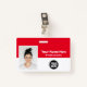 Personnalisez facilement ce badge personnalisé de nom d'employé avec photo, code à barres d'analyse et logo de l'entreprise, avec nom de personne, profession, code à barres d'identité optionnel, avec clip métallique inclus. Un badge de marque utile pour identifier le personnel, les visiteurs ou les invités, le docror, l'infirmière et les professions médicales. Un design d'entreprise simple avec une grande photo en rouge et blanc entièrement personnalisable en tailles avant et arrière, dans n'importe quelle couleur arrière - plan, sans-serif polices de base et moderne et un look professionnel et clair. Un outil utile pour les événements d'entreprise, les réunions, les nouvelles et les célébrations. Créez plus de carte d'identification de badge photo d'entreprise en différentes couleurs pour toute catégorie que vous devez identifier : personnel, visiteurs ou invités. Disponible avec ou sans nacelle, clip métallique ou avec rétractable. Pas de commande minimum.