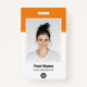 Personnalisez facilement ce badge personnalisé de nom d'employé avec Photo, Scan Qr Bar Code et logo d'entreprise. Un design d'entreprise simple dans les couleurs orange et blanc entièrement personnalisable dans les tailles avant et arrière, sans-serif polices de base et moderne et un look professionnel et clair. Disponible avec cordon, clip métallique ou avec rétractable. Pas de commande minimum.