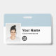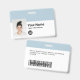 Personnalisez facilement cet employé personnalisé - Professionnel Logo Nom Badge avec Photo, Code de la barre de numérisation et logo de l'entreprise, avec clip métallique inclus. Un design d'entreprise simple aligné à gauche dans les couleurs bleu clair et blanc entièrement personnalisable en tailles avant et arrière, sans-serif polices de base et moderne et un look professionnel et clair. Disponible avec ou sans nacelle, clip métallique ou avec rétractable. Pas de commande minimum.