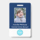 Créez votre propre plastique PVC personnalisé, durable, ne s'estompera pas ou déchirera, cool moderne tendance bleu marine et blanc, nom badge photo d'identité, avec choix de pièces jointes - lanière, clip métallique, rétractable, ou aucun. Pour personnaliser, entrez le nom de l'employé / du personnel / de l'exécutif, sa désignation, ainsi que toute information supplémentaire comme la pièce d'identité de l'employé, l'émission et la date d'expiration de l'insigne, en cas de perte retour à & l'adresse, etc. Ajoutez ensuite la photo de l'employé / du personnel / de l'exécutif, ajoutez le logo de l'entreprise / de l'entreprise, et ajoutez le code barre. Pendant que vous tapez/concevez, vous pourrez voir un aperçu de votre badge, tout au long du processus. Idéal pour les petites entreprises, les entreprises, l'école, le restaurant, le bureau, le concert, la vente au détail, l'hôpital, la clinique, et pour les employés, le personnel, le médecin, l'enseignant, l'étudiant.