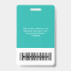 Personnalisez facilement ce badge personnalisé de nom d'employé avec la photo, le code de la barre d'analyse et le logo d'une grande entreprise. Un design d'entreprise simple dans des couleurs bleu clair et blanc turquoise entièrement personnalisable en tailles avant et arrière, sans-serif polices basiques et modernes et un look professionnel et clair. Disponible avec cordon, clip métallique ou avec rétractable. Pas de commande minimum.