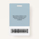 Personnalisez facilement ce badge personnalisé de nom d'employé avec la photo, le code de la barre d'analyse et le logo d'une grande entreprise. Un design d'entreprise simple dans des couleurs bleu clair et blanc poussiéreux entièrement personnalisable en tailles avant et arrière, sans-serif polices de base et moderne et un look professionnel et clair. Disponible avec cordon, clip métallique ou avec rétractable. Pas de commande minimum.
