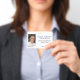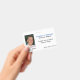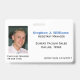 Badge employé blanc personnalisé, avec emplacement pour photo sur le devant gauche. Personnalisez tous les champs de texte avec les informations dont vous avez besoin et remplacez l'image par la vôtre.