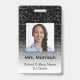 badge simple et moderne avec thème mathématique de géométrie sur noir et blanc. Il y a de l'espace pour ajouter le nom de l'école ou du collège, le nom de l'enseignant, le département ou le sujet, le poste général et votre photo. Cliquez sur "personnaliser ce modèle" pour ajouter vos informations personnelles.