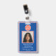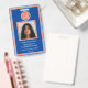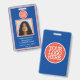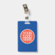Photo d'employé moderne orange et bleu encadrée au milieu, télécharger votre logo d'entreprise et customiser les informations d'employé.