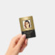 Entreprise de photographie moderne avec photo sur fond doré et logo. Des informations supplémentaires peuvent être ajoutées au verso de ce badge d'identification d'entreprise