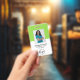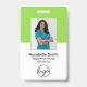 badge d'identification de l'employé vert néon standard avec nom, titre, numéro d'identification ou autres informations et votre logo sous votre photo. Le dos contient vos coordonnées et code à barres ou code QR. Ce design professionnel est idéal pour une petite entreprise, un hôpital ou toute entreprise.