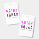 "Bride Squad", une jolie, simple et élégante, cite un badge d'identification d'art avec une typographie moderne et minimaliste en noir et rose néon chaud dans un style tendance cool. Le slogan, le nom et le rôle peuvent facilement être personnalisés avec les noms de votre fête de mariée, par exemple, mariée, demoiselles d'honneur, filles de fleurs, Mère de la mariée, Gel Squad et bien plus encore ! Le mariage parfait, la coordination des accessoires pour l'équipe mariée pour une douche nuptiale, la fête de bachelorette, ou le matin du mariage avec un super mignon ou une petite touche personnelle!