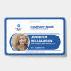 Carte d'identification minimaliste bleue pour les petites entreprises avec code QR, badge d'identification de photo d'employé