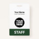 Personnalisez facilement ce badge de nom professionnel personnalisé sans photo ni logo d'entreprise. Un design d'entreprise simple à l'avant et à l'arrière imprimé le même dans des couleurs cool vert foncé et blanc entièrement personnalisable dans les tailles avant et arrière, sans-serif polices de base et moderne et un look professionnel et clair, parfait pour les employés de petite entreprise, patron, invités. Ces fournitures de badges d'identification d'entreprise sont disponibles avec cordon, clip métallique ou avec rétractable. Pas de commande minimum, mais économiser de l'argent et profiter de rabais Zazzle par plusieurs commandes!