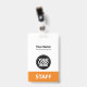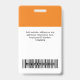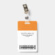 Personnalisez facilement ce badge de nom professionnel personnalisé sans photo, avec le code de la barre de numérisation et le logo d'une grande entreprise. Un design d'entreprise simple en orange et blanc entièrement personnalisable en tailles avant et arrière, sans-serif polices de base et moderne et un look professionnel et clair, parfait pour les employés de petite entreprise, patron, invités. Ces fournitures de badges d'identification d'entreprise sont disponibles avec cordon, clip métallique ou avec rétractable. Pas de commande minimum, mais économiser de l'argent et profiter de rabais Zazzle par plusieurs commandes!