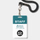 Présentez une image propre et professionnelle tout en soutenant la sécurité du lieu de travail avec ce badge personnalisé avec code-barres et logo d'entreprise sarcelle pour employés. La disposition de conception rationalisée se concentre sur la clarté et l'efficacité, ce qui le rend idéal pour les organisations qui préfèrent un style d'identification minimaliste et axé sur le texte.