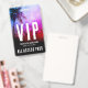 Ce badge VIP présente un design coloré et énergique, parfait pour un concert en plein air ou une fête avec une ambiance Coachella. En haut, un mélange vibrant de bleu, de rose, de rouge et de violet représente les silhouettes des participants au concert et un palmier en haut à gauche, capturant l'atmosphère animée du festival. L'image se fond doucement dans le noir en bas, où le nom de l'événement, la date et "All Access Pass" sont affichés dans des polices blanches épurées, avec "VIP" en gras en haut.