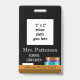 Un faux badge d'identification photo verticale du tableau de bord pour le bibliothécaire de l'école. Customisez-le avec l'image de visage de l'employé de 2 pouces, le nom du bibliothécaire, le titre, le nom de l'école sur le devant. Sur le dos, remplissez le modèle avec le nom et l'adresse de votre école. Il y a un rectangle blanc conçu pour la signature du porte-badge. © ArianeC Illustrations-Tous droits réservés
