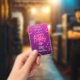 Invitation moderne et ultra festive pour une fête d'anniversaire surprise avec des confettis rose et violet, des rubans rose et violet enroulés et des lumières néon rose. Le fond présente un dégradé moderne du rose au violet au noir. Personnalisez avec le nom et lançons la fête !