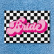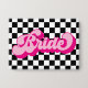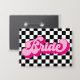 Créez votre propre typographie "Bride" rose et rose chaud de style rétro contre un motif de damier personnalisable sur un bouton rectangulaire à bascule pour votre soirée bachelorette. Vous pouvez modifier les quatre couleurs des graphiques vectoriels pour qu'elles correspondent aux couleurs de la palette mariage. Customisez avec le texte du système pour créer votre propre design personnalisé.