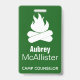 Le feu de camp moderne et les arbres verts et blancs modèlent le badge nominatif fait sur commande.