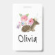 Badge Nom Fleur de la Forêt Rose Fille Personnalisée - C'est une idée personnalisée adorable pour votre petite princesse. Ce design botanique pour les amoureux des animaux présente un bébé cerf et des fleurs sauvages pastel colorées à l'aquarelle. Idéal pour la rentrée scolaire ou comme badge de nom pour une fête d'anniversaire. #invitédhonneur