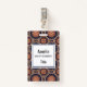 Nom badge avec un motif répétitif d'éléments décoratifs ornés en forme de fleur, d'étoile et de soleil.