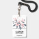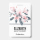 Nom badge avec une jolie aquarelle illustration de fleurs roses avec feuilles gris sur une seule tige. Un design botanique moderne et élégant.