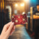 Badge Flocons de neige dorés de Noël sur fond rouge