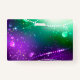 Fond violet et vert vif avec confettis brillants. Festival Mardi Gras.