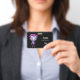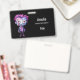 Nom badge avec une jolie illustration. Monstre Frankenstein aux cheveux roses et violets et au manteau et à la cravate dapper.