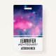 Insigne de nom avec une belle conception abstraite en rose et bleu. Des étoiles blanches parsemèrent cette image du cosmos. Trippy et cool.