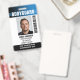 Badge de garde du corps professionnel avec photo de profil et logo de l'entreprise. Ce modèle modifiable peut être personnalisé avec une photo, un nom, un titre de poste, un numéro d'identification, un nom d'entreprise, une date d'expiration, un code-barres et un logo d'entreprise pour la marque. Un design moderne avec des bandes de dégradé et une police propre. Il offre un texte entièrement personnalisable pour s'adapter à la marque de votre entreprise. Idéal pour divers lieux de travail et rôles, tels que garde du corps personnel, agent de sécurité, agent de protection rapprochée, sécurité d'entreprise privée, sécurité de magasin, portier officiel, équipe d'événement, employé de vente au détail, personnel médical, laissez-passer pour petite entreprise, badges nominatifs de conférence et plus encore ! Couleurs imprimées : noir, blanc et bleu. Visitez la collection pour plus d'idées de produits de sécurité populaires et de fournit