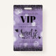 Faites votre Sweet 16 spécial supplémentaire avec des badges VIP pour vos invités! Ce badge VIP amusant est doté d'un arrière - plan bokeh violet avec une bordure numérique en parties scintillant noire en haut et en bas avec de petits coeurs et les mots "Sweet 16" remplis d'un effet de parties scintillant numérique noire. © 2021 | Olive tacheté™ | Tous droits réservés.