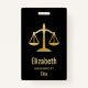 badge de nom personnalisé avec une image de balance dorée sur un arrière - plan noir. Simple et élégant.