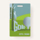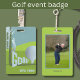 Ce badge de participation à un événement de golf est adapté pour les petits tournois de golf auto-organisés, ou pour les participants à utiliser pour les collections de mémoire et l'analyse des enregistrements de piste. Il dispose d'un design moderne de golfeur et de golfball sur le devant, avec le mot "golf" en gros texte sur un arrière - plan bleu vert. A l'arrière, il y a de la place pour une photo. Les options de texte sont entièrement personnalisables.
