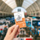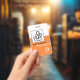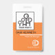 Un design de blocs de colonnes blanc et orange est accentué par une bande blanche près du centre de l'insigne. Près du haut du badge est un modèle photo pour charger des photos d'une taille de 1000 x 1000 pix. En dessous de ce modèle photo sont votre nom avec le titre de l'emploi. Vers le sud vers la base se trouve le logo global blanc en option que vous pouvez utiliser et son contact URL email.